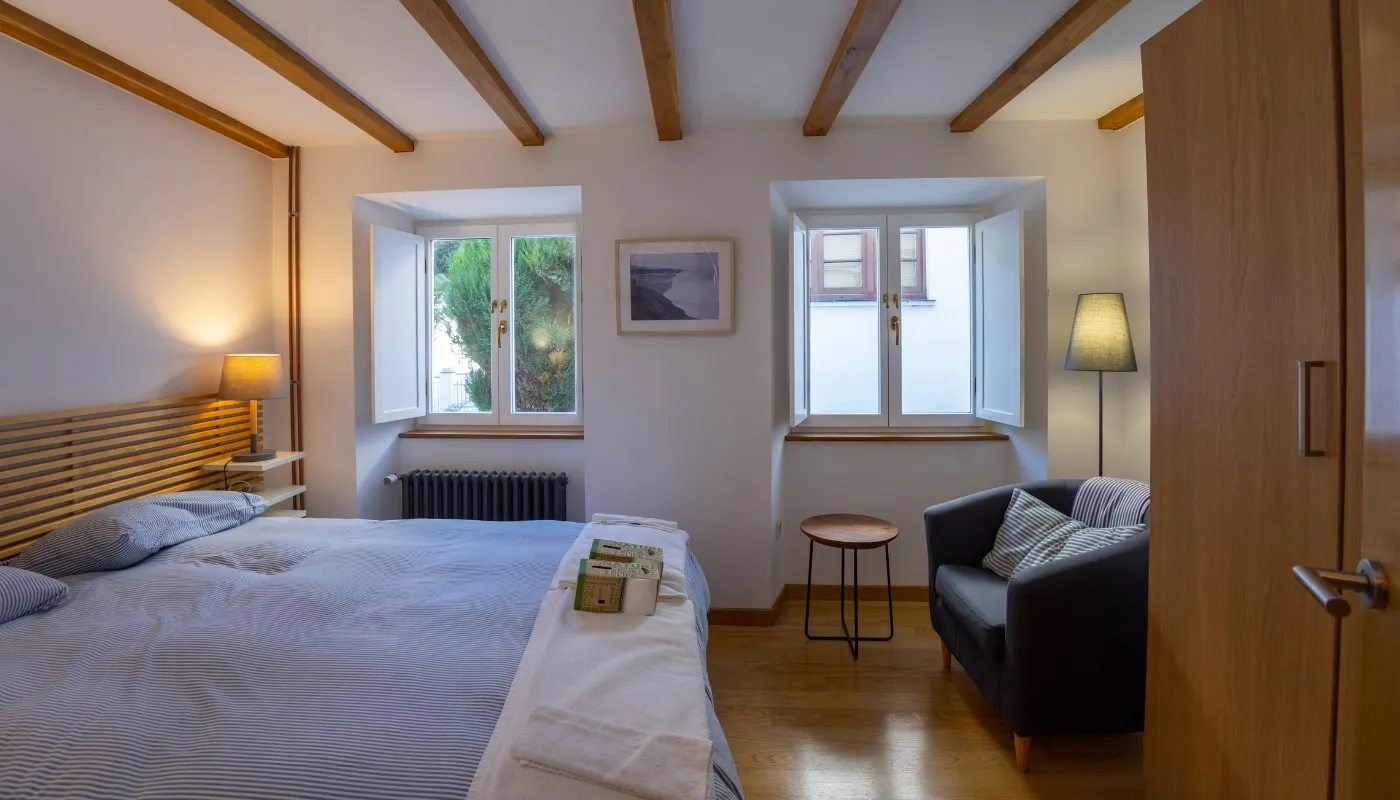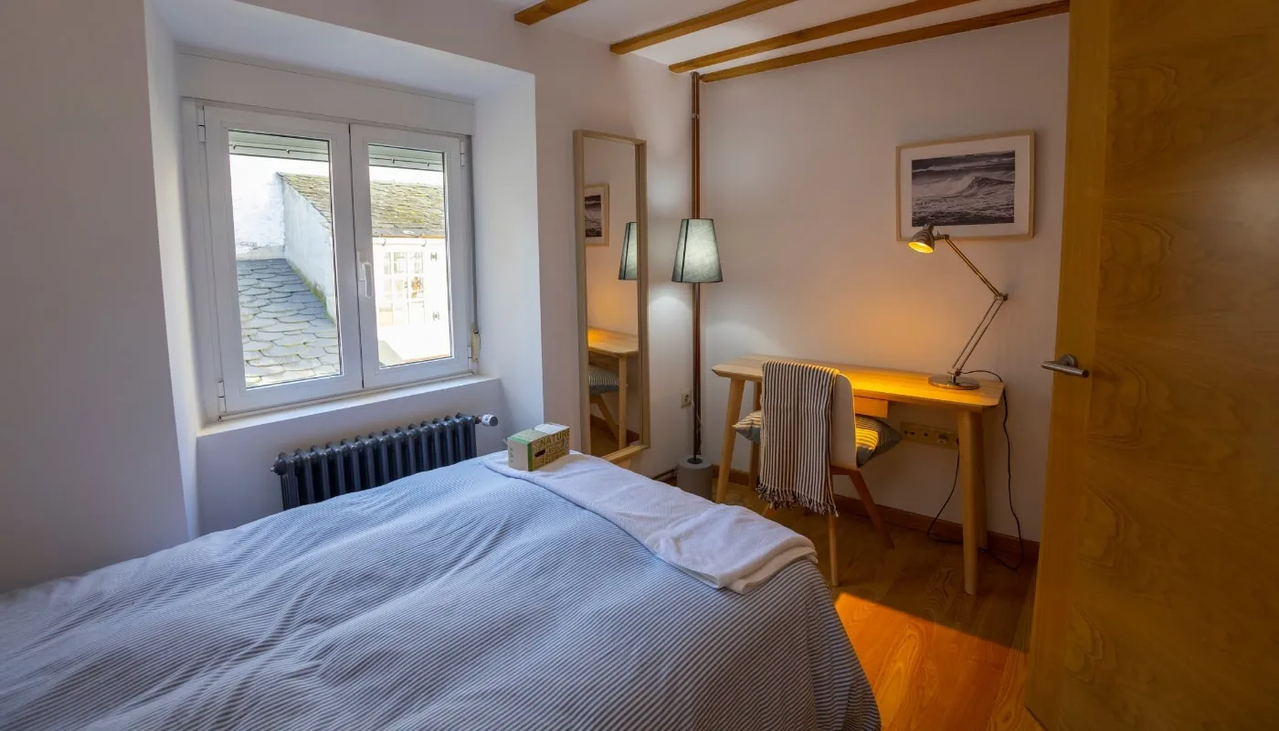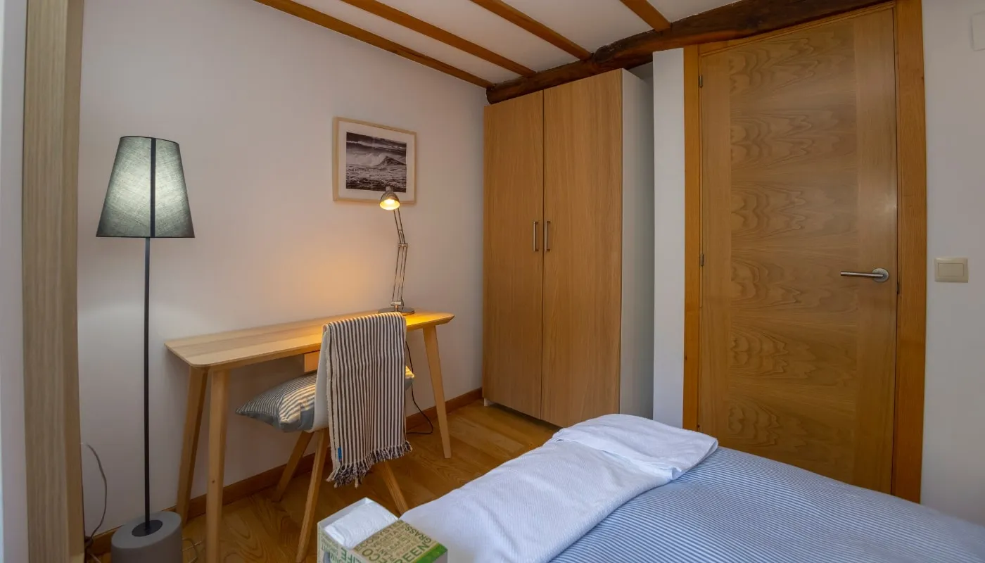 Si prefieres el Apartamento Jovellanos, tiene capacidad para 3 personas con una habitación con cama de matrimonio de 150 cm, una habitación individual de 130 cm y un baño completo.