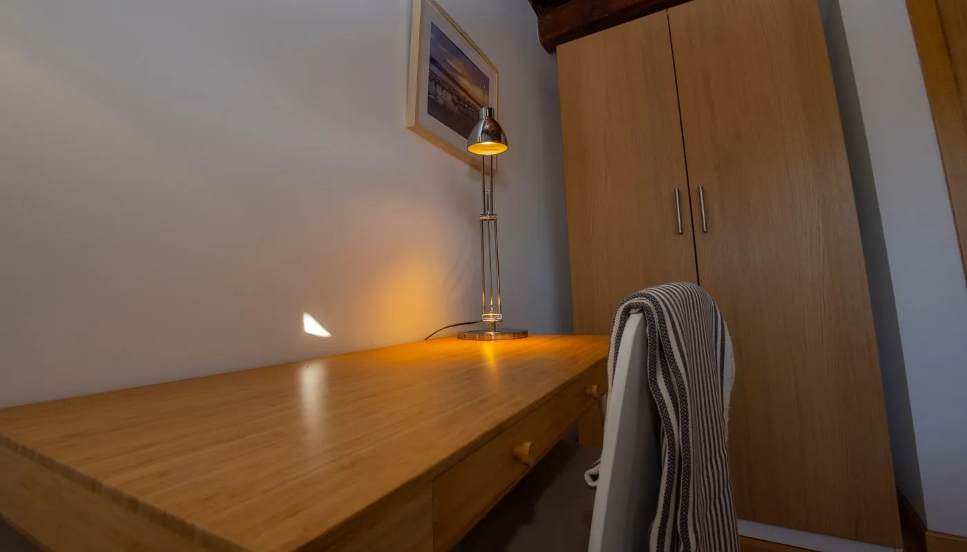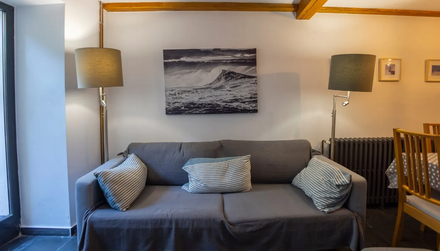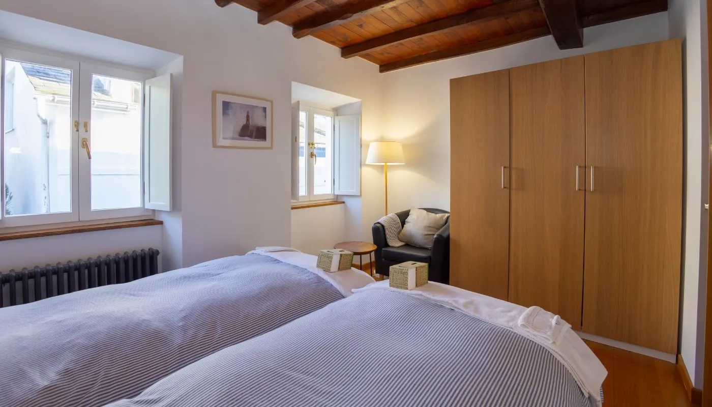 Si prefieres el Apartamento Jovellanos, tiene capacidad para 3 personas con una habitación con cama de matrimonio de 150 cm, una habitación individual de 130 cm y un baño completo.